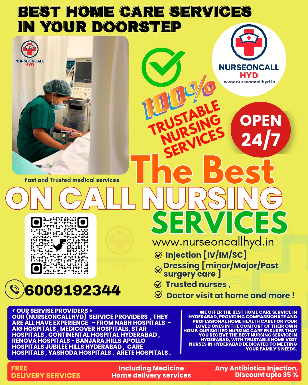 Call us at [6009192344] or visit www.nurseoncallhyd.in to book reliable home nursing care in Hyderabad.